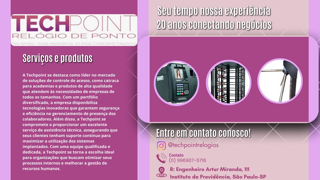 A Techpoint se destaca como líder no mercado de soluções de controle de acesso, como catraca para academias e produtos de alta qualidade que atendem às necessidades de empresas de todos os tamanhos. Com um portfólio diversificado, a empresa disponibiliza tecnologias inovadoras que garantem segurança e eficiência no gerenciamento de presença dos colaboradores. Além disso, a Techpoint se compromete a proporcionar um excelente serviço de assistência técnica, assegurando que seus clientes tenham suporte contínuo para maximizar a utilização dos sistemas implantados. Com uma equipe qualificada e dedicada, a Techpoint se torna a escolha ideal para organizações que buscam otimizar seus processos internos e melhorar a gestão de recursos humanos.